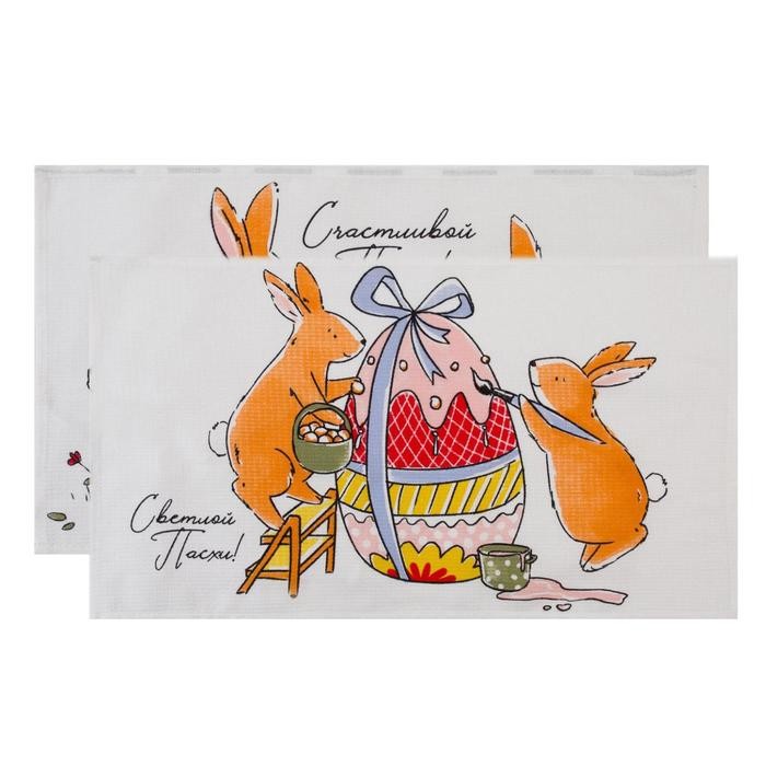 Набор кухонных полотенец Доляна «Пасхальные зайчики», 35х60см-2 шт, 100% хл, вафля 160 г/м2