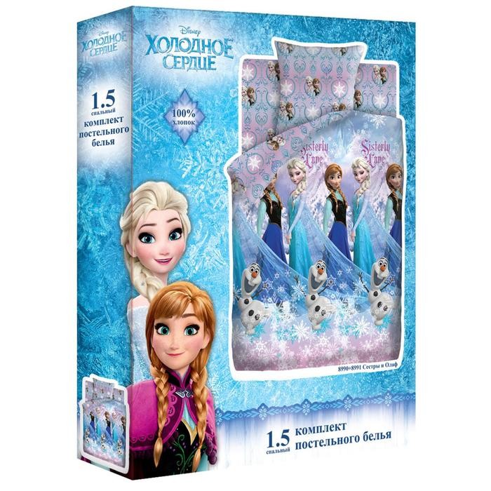 Постельное бельё 1.5 Холодное сердце Сёстры и Олаф 143×215, 150×214, 50×70 см, бязь 120 гм хлопок 100%