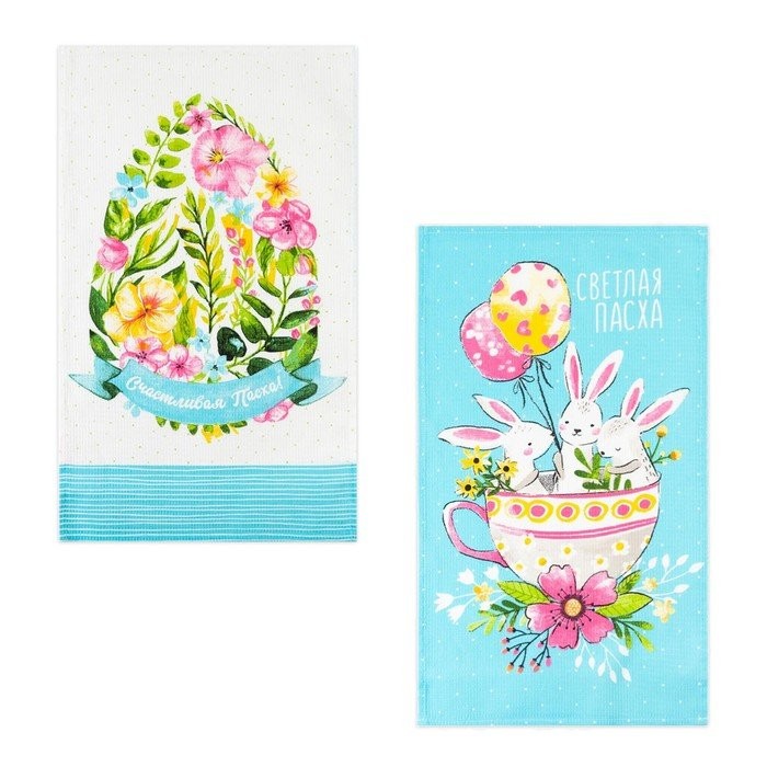 Набор полотенец кух. Доляна «Пасхальные забавы» 35х60см-2шт, 100% хл