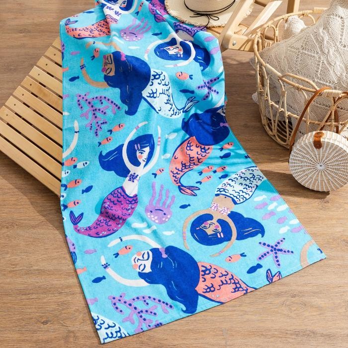 Полотенце «Русалки» 70*140 см, велюр/махра 350гр/м2, 100% хлопок