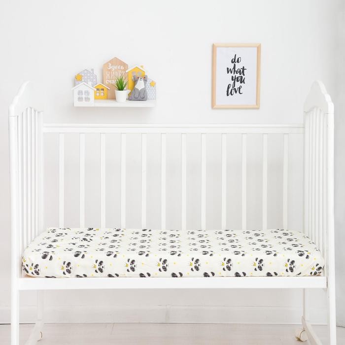 Простыня на резинке «LoveLife» Милые панды 60*120+20 см, 100% хлопок, сатин