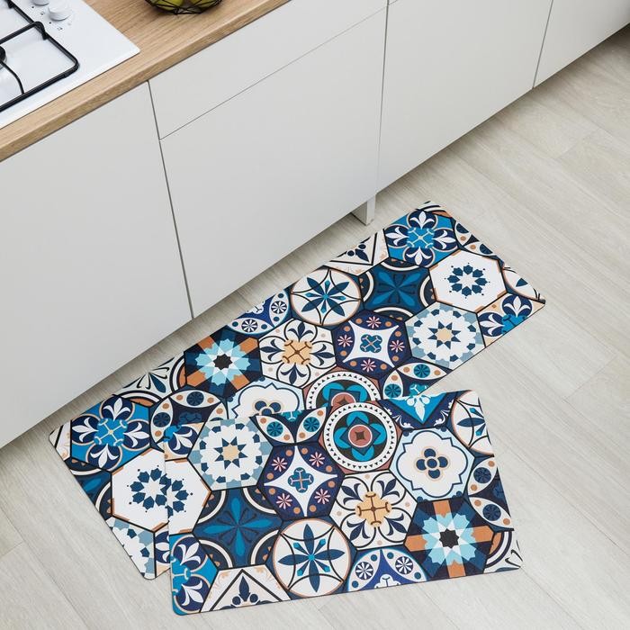 Набор ковриков для ванны и туалета Доляна «Мистери», 2 шт: 45×75, 45×120 см, цвет синий