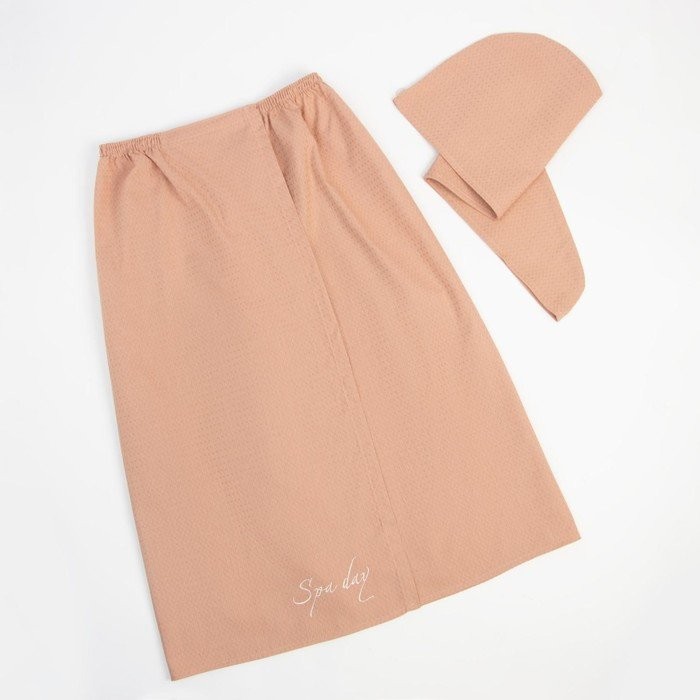 Набор для бани Spa day жен.парео 80×150±4 см, чалма, 100% хл., ваф.полотно, беж., 160 гр/м2
