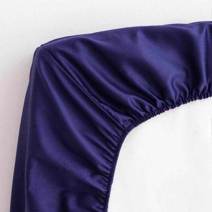 Простыня на резинке Этель 160*200*25 см, цв. темно-синий, 100% хлопок, мако-сатин, 128 г/м²