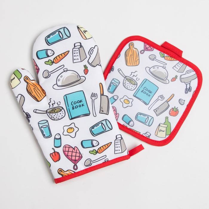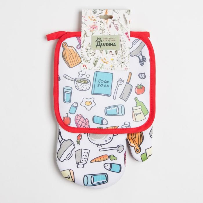 Кухонный набор Доляна Cook book, прихватка 17*17 см, рукавица 26*16 см,100% п/э