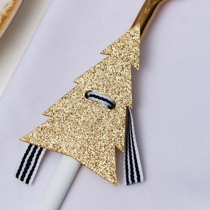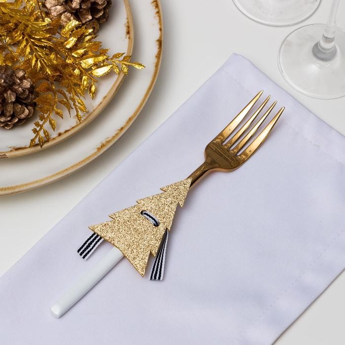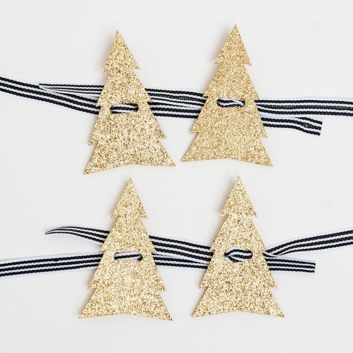 Набор для декора столовых предметов «Елка», 4 шт, цв. золото 5×7,5 см 100% п/э, фетр