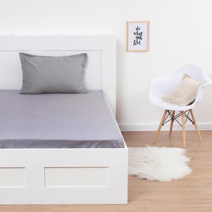 Простыня на резинке Этель 160*200*25 см, цв. серый, 100% хлопок, мако-сатин, 128 г/м²