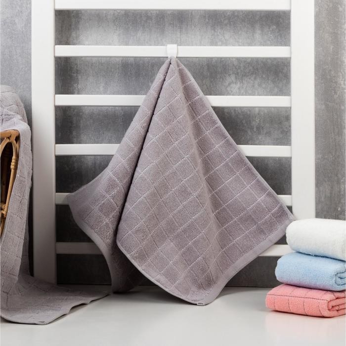 Полотенце махровое Этель «Клетка» цв.серый, 34*70 см, 350 гр/м2, 100% хлопок