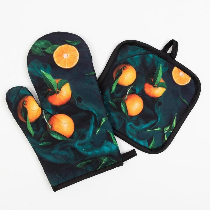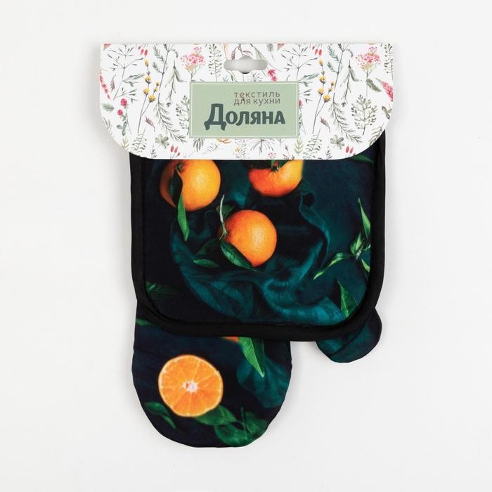 Кухонный набор Доляна «Апельсины» прихватка 17*17 см, варежка-прихватка 26*16 см, 100% п/э