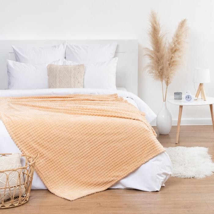 Плед Этель «Клетка» 200*220 см, цв.бежевый, корал-флис, 240гр/м2, 100% полиэстер