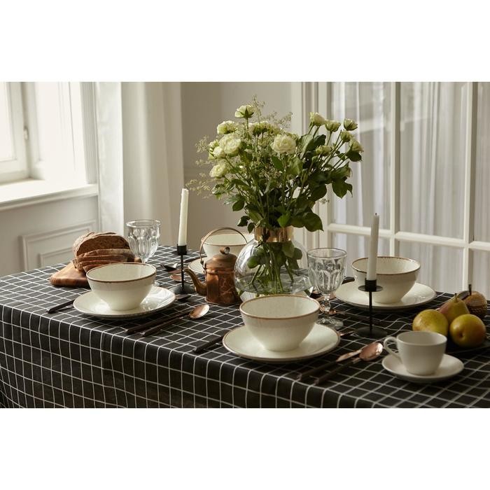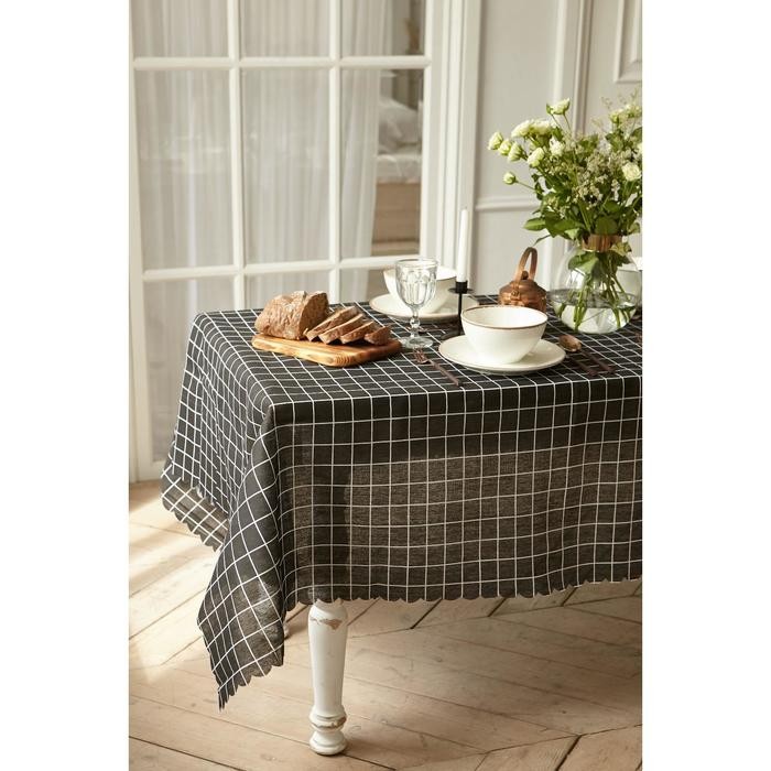 Скатерть Доляна «Клетка"цв.черный 145×145±3см,100%пэ, рогожка 130 гр/м