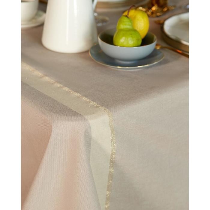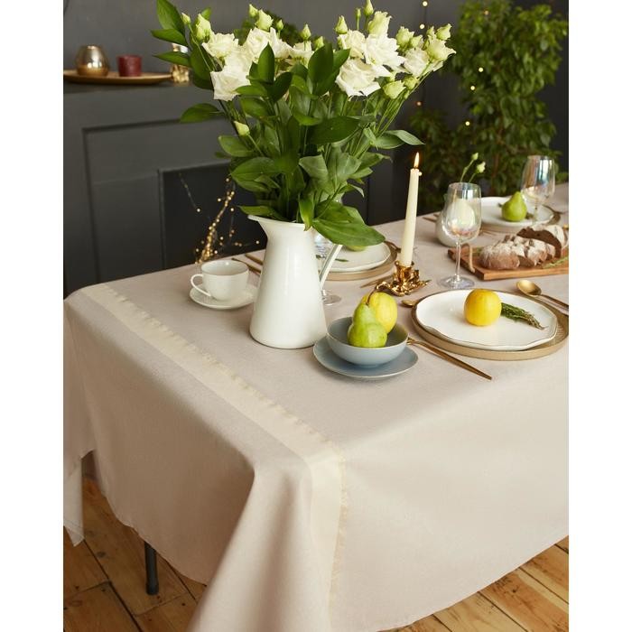 Скатерть «Этель» 110×165 см, цв. кофейный с золотой нитью, 100% хлопок, 163 г/м2