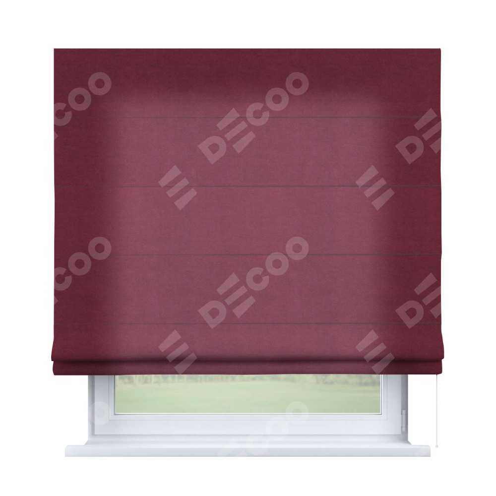 Римская штора производителя «Cortin», используется для проёма, пошита из ткани вельвет бордовый, артикул ткани 85553. Имеет универсальный механизм и подходит для монтажа: на потолок, на стену и в нишу.