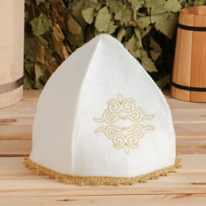 Шапка для бани с вышивкой «Казахстанский колпак женский» с золотыми узорами