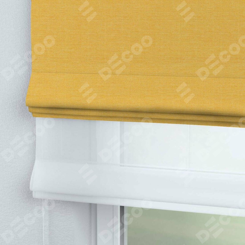 Римская штора день-ночь производителя «Cortin», используется для проёма, пошита из двух полотен, с лицевой стороны лён жёлтый артикул 63738, вторая ткань тюль (по стандарту комплектуется тюль белого цвета артикул V-01). Имеет универсальный механизм и подходит для монтажа: на потолок, на стену и в нишу.