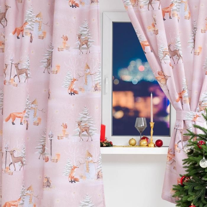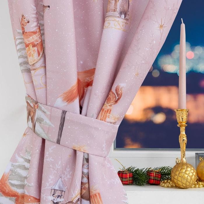 Новогодний комплект штор для кухни с подхватами «Christmas forest» 145х180см-2 шт, габардин