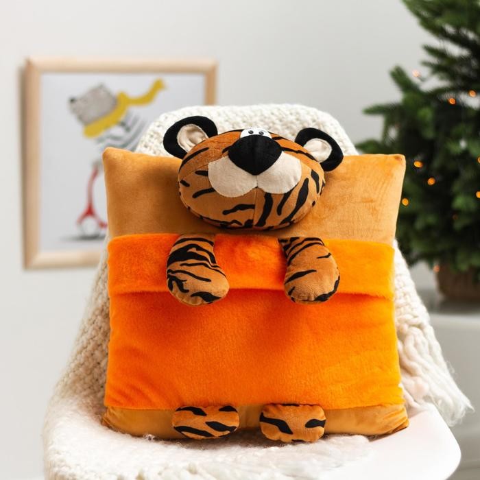 Подушка-игрушка декоративная «Тигр-Соня» 45х40см, цвет оранжевый