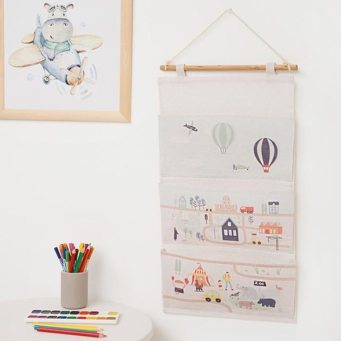 Кармашек текстильный Этель «Город», 3 отделения, 34*63,5 см