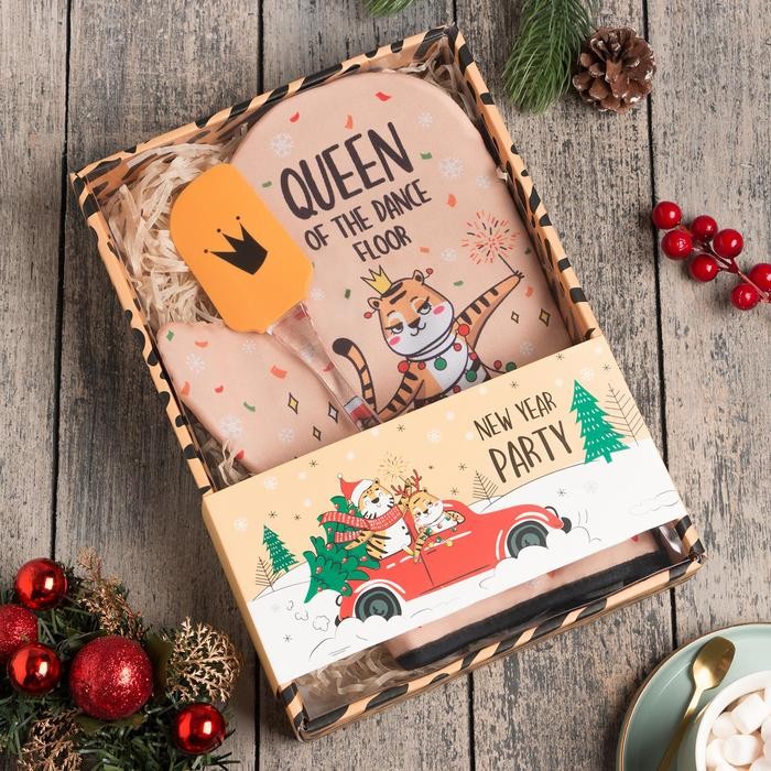 Новогодний набор подарочный Party варежка-прихватка, лопатка силикон