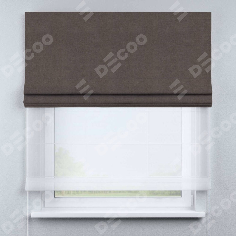 Римская штора «Кортин» день-ночь, ткань вельвет коричневый