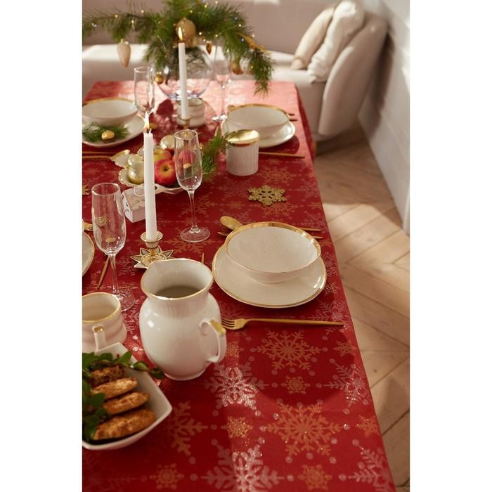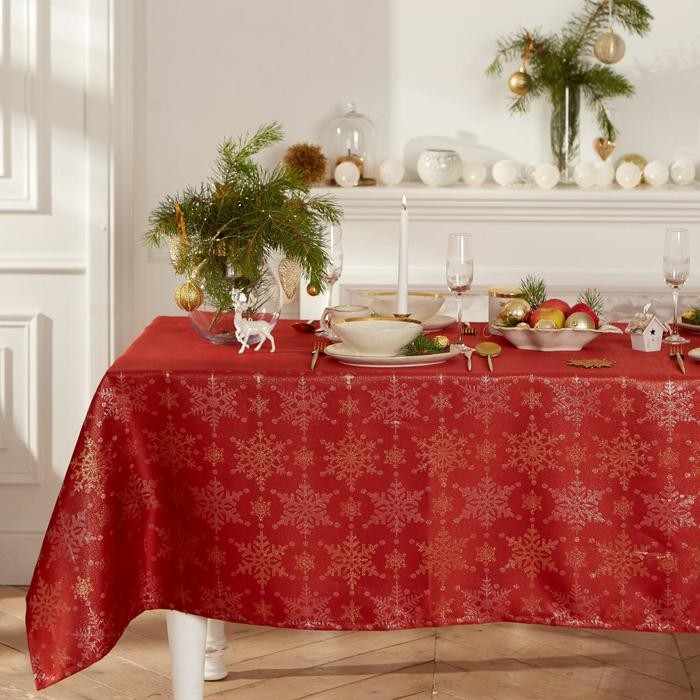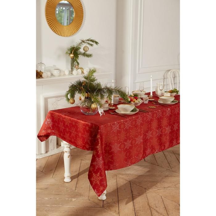 Скатерть Этель «Новый год: Снежинки» цвет красный, 142*180 +/-3 см, 115 ±10 гр, 100% п/э