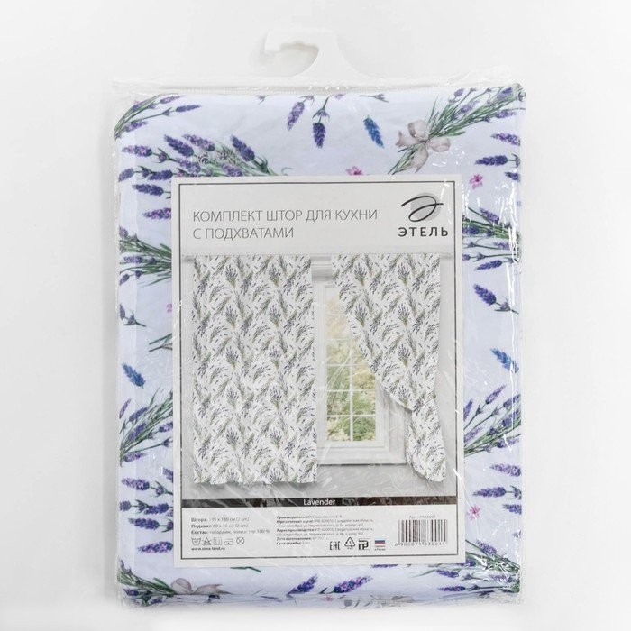 Комплект штор для кухни с подхватами Lavender 145х180см-2 шт., 100% п/э