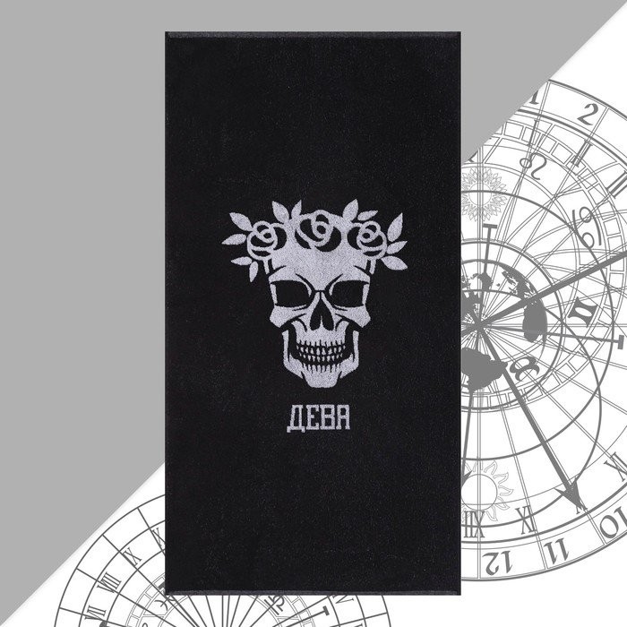 Полотенце махровое Этель «Знаки зодиака: Дева» чёрный, 67×130 см, 420 гр/м2, 100% хлопок