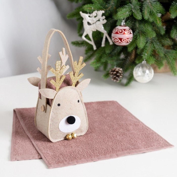 Полотенце в корзинке Экономь и Я «Олень» 30*60 см, цв. мокко, 100%хл, 320 г/м2