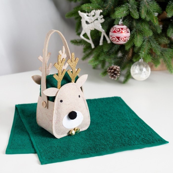 Полотенце в корзинке Экономь и Я «Олень» 30*60 см, цв. изумрудный, 100%хл, 320 г/м2