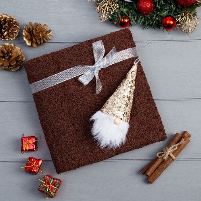 Подарочное полотенце с игрушкой Этель «Гномик» 50*90 см, цв.коричневый, 100% хл, 320г/м2
