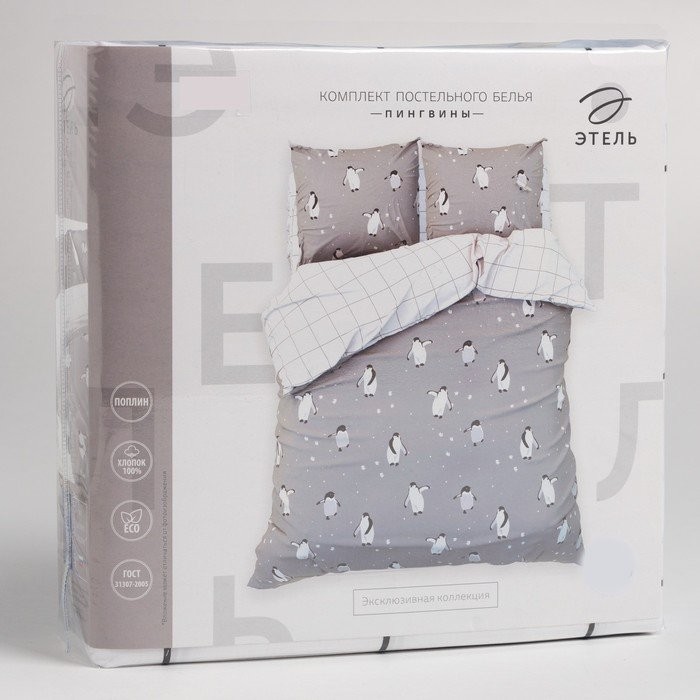 Постельное белье Этель 1.5 сп «Пингвины» 143*215 см, 150*214 см, 70*70 см — 2 шт