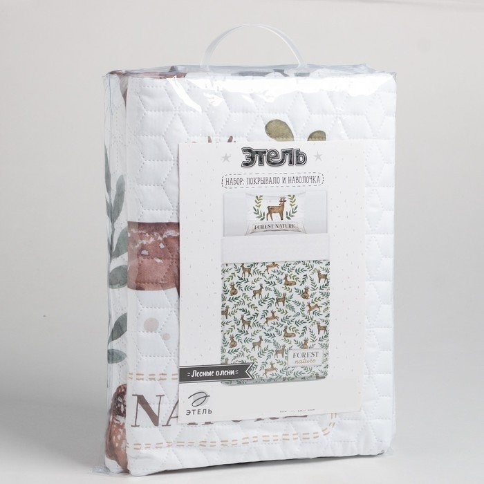 Покрывало детское и наволочка Этель 1,5 сп, «Лесные олени», 145×210 см, 40×60 см, микрофибра