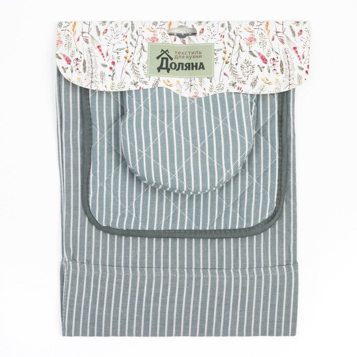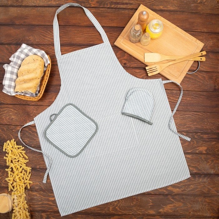 Кухонный набор «Полосы» фартук 60х70см, прихватка 20х20см, варежка 12х15см, цвет серый, 50%п/э, 50%хл