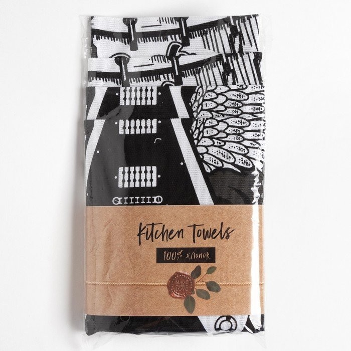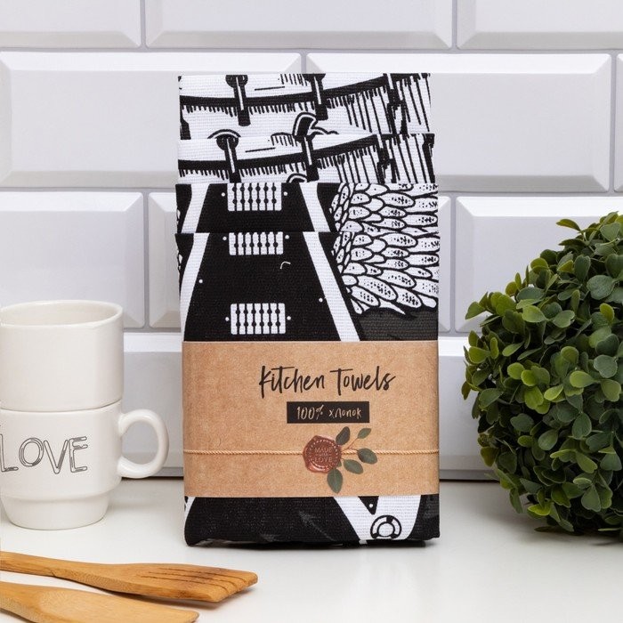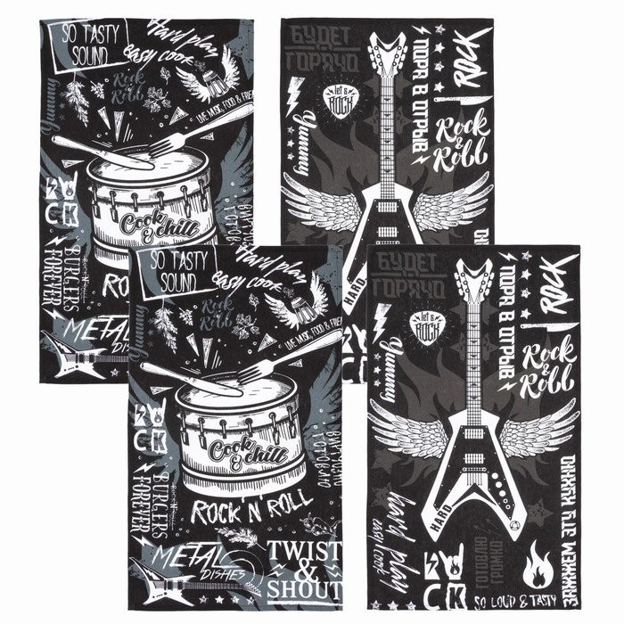 Набор кухонных полотенец Доляна Rock’n'roll 35х60см-4шт, 100% хл