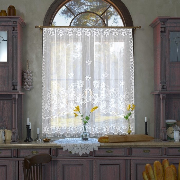 Тюль для кухни без шторной ленты, 175×145 см, цвет белый, полиэстер 100%