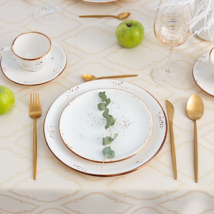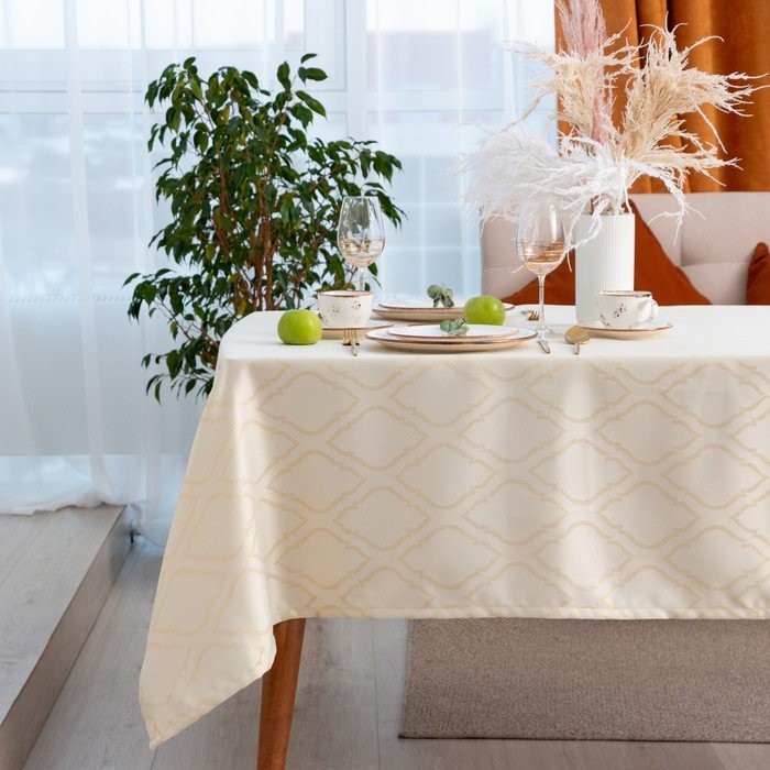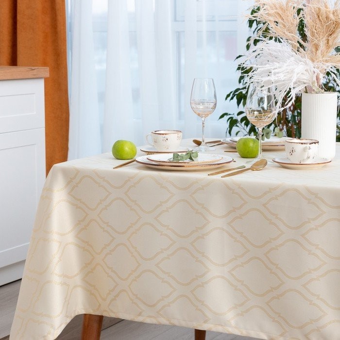 Скатерть Этель «Ажур» цв.бежевый, 142*180 +/-3 см, 115 ±10 гр,100% п/э