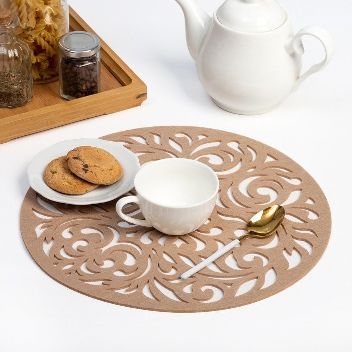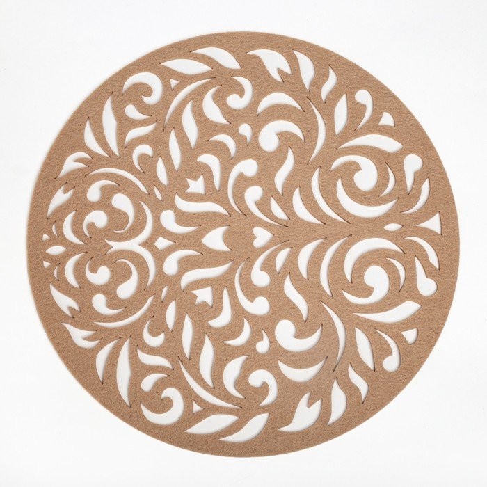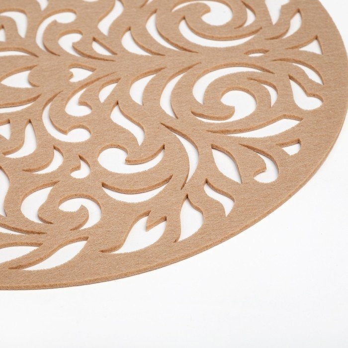 Салфетка декоративная Доляна"Узоры» цвет бежевый, d 30 см, 100% п/э, фетр