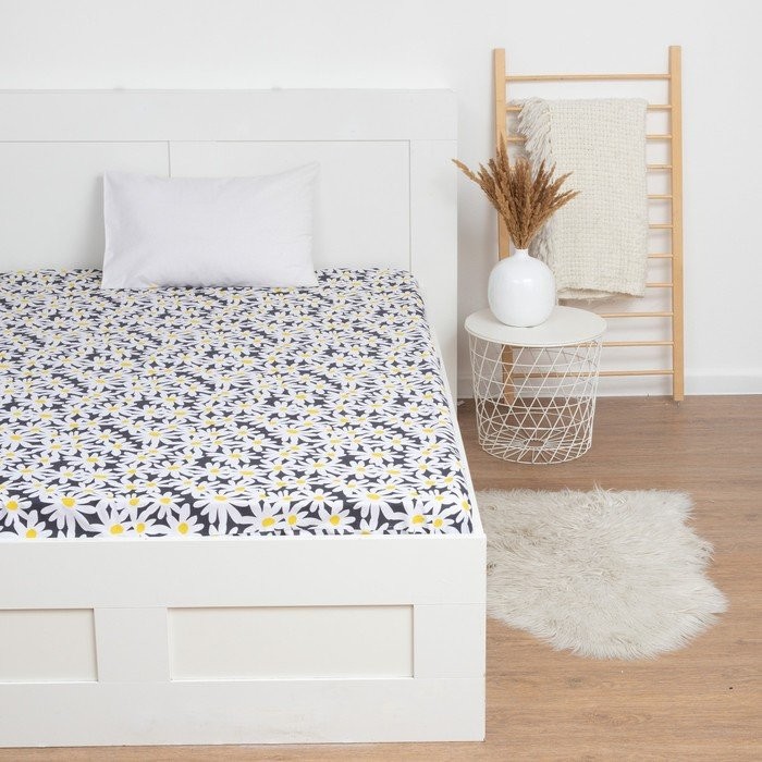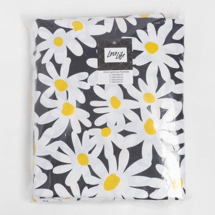 Простыня на резинке LoveLife 180*200*25см, «Ромашки», 100% хлопок, сатин, 125г/м²