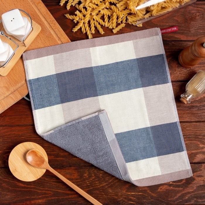 Салфетка для уборки двухсторонняя Доляна «Клетка» цв.синий 35×35 см, 100% хлопок