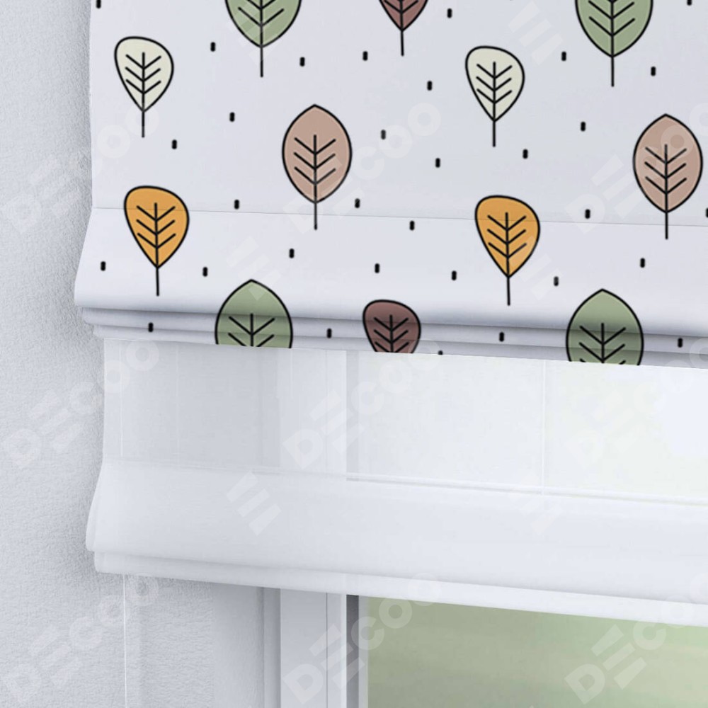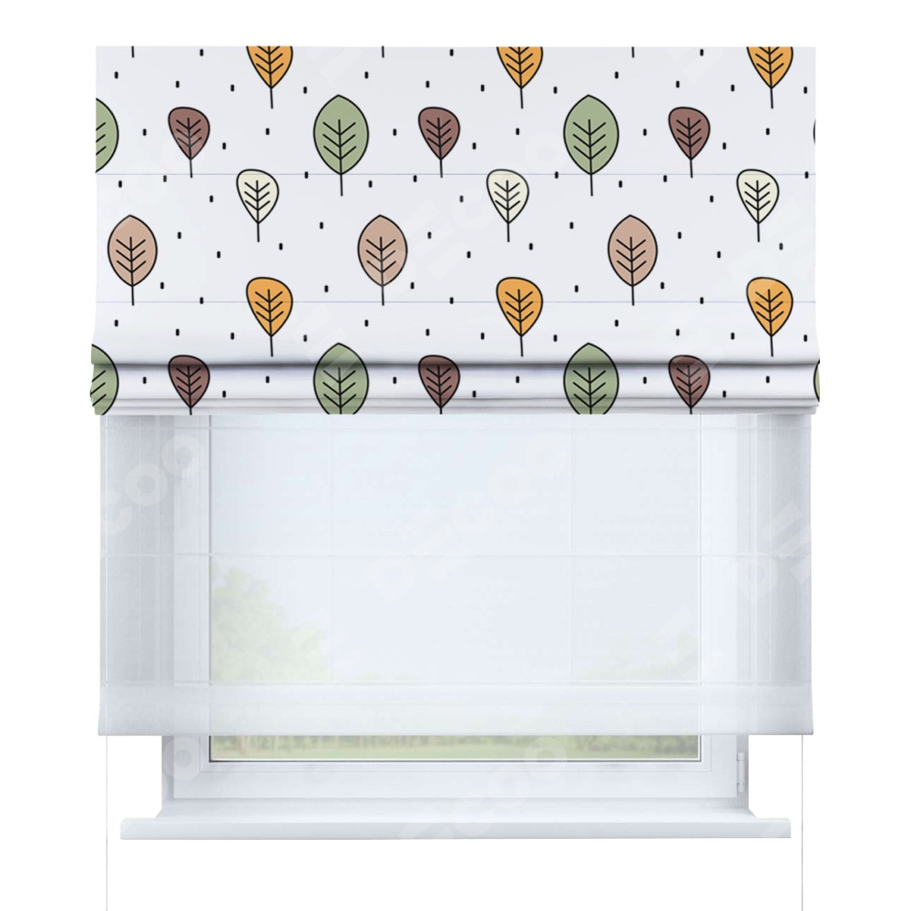 Римская штора день-ночь производителя «Cortin», используется для проёма, пошита из двух полотен, с лицевой блэкаут с нанесением сублимационной печати «Простые деревья», вторая ткань тюль (по стандарту комплектуется тюль белого цвета артикул V-01). Имеет универсальный механизм и подходит для монтажа: на потолок, на стену и в нишу.