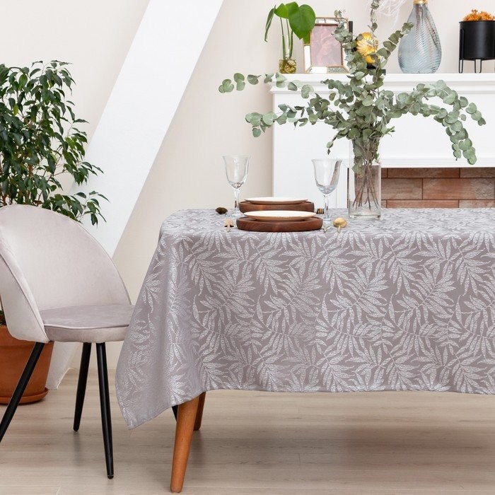 Скатерть Этель «Tropics» цв.серый, 142*220 +/-3 см, 115 ±10 гр,100%