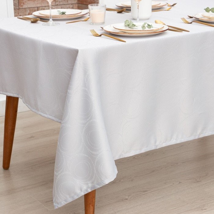 Скатерть Этель «Круги» цв.серебро, 142*220 +/-3 см, 115 ±10 гр,100%