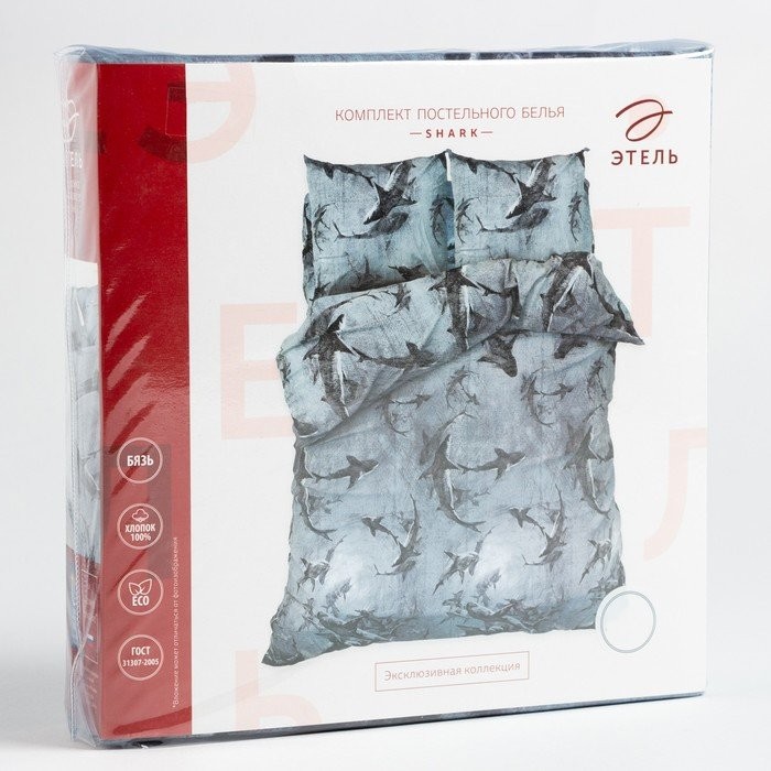 Постельное белье Этель дуэт Shark 143*215 см 2 шт,220*240 см,70*70 см 2 шт, бязь
