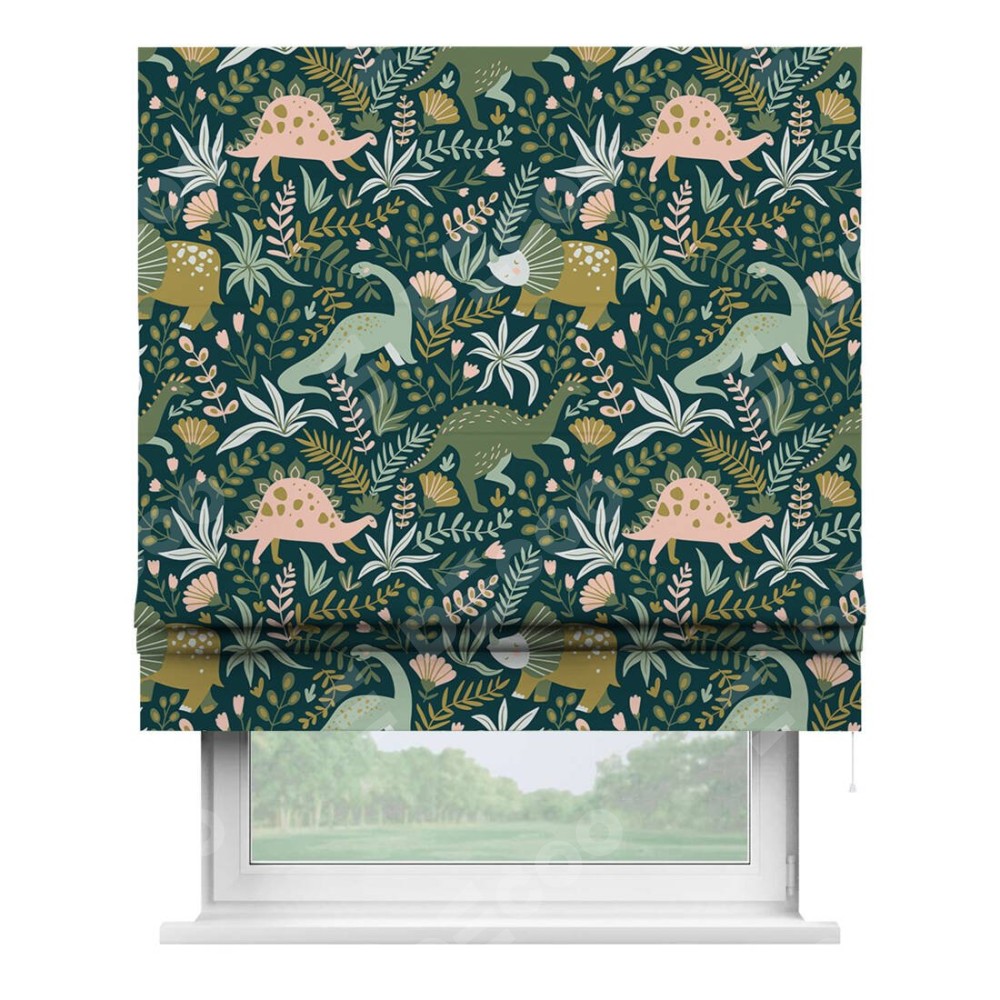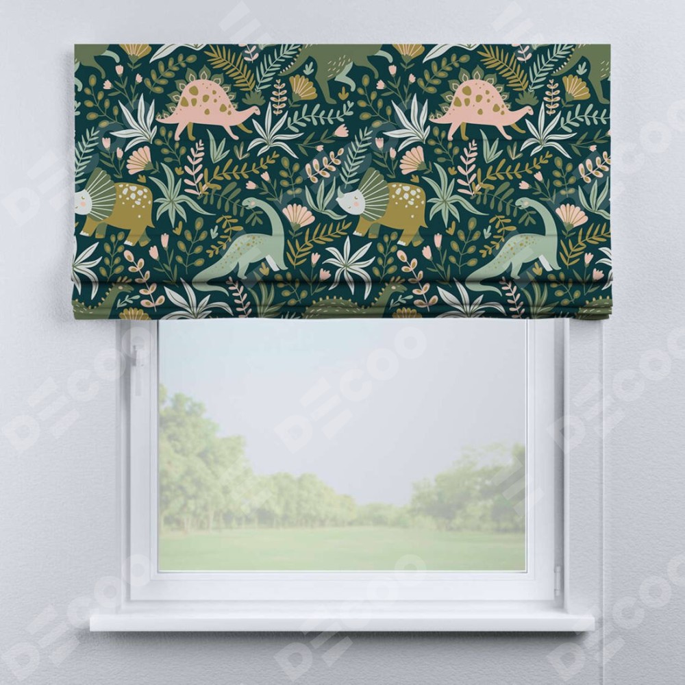 Римская штора производителя «Cortin», используется для проёма, пошита из ткани блэкаут с нанесением сублимационной печати «Удивительный дино». Имеет универсальный механизм и подходит для монтажа: на потолок, на стену и в нишу.