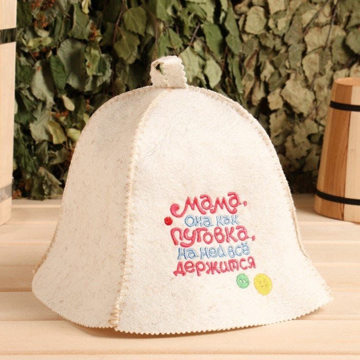 Шапка для бани «Мама, она как пуговка» овечья шерсть