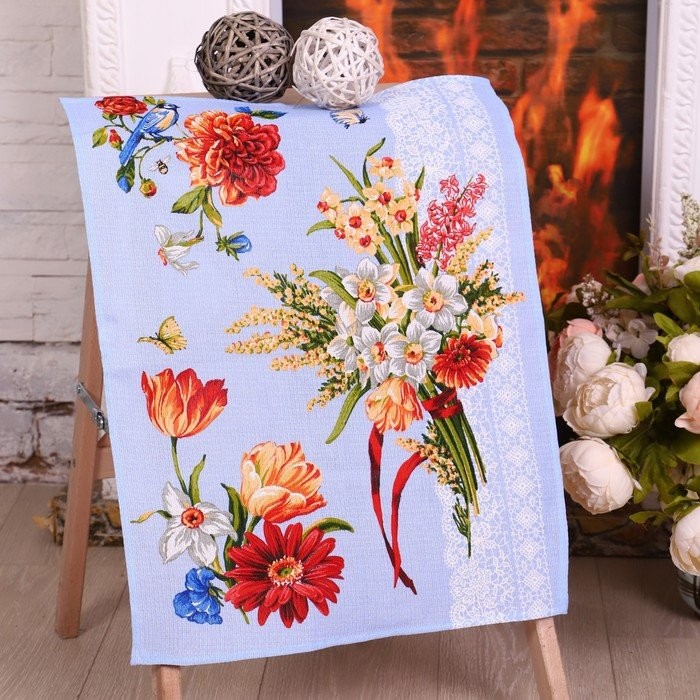 Полотенце 45×60 см, Цветы для любимых (рис.3), вафля, 170 гр/м2, хлопок 100%