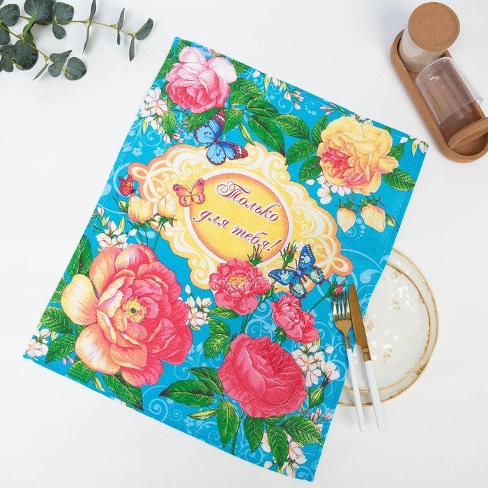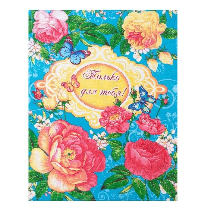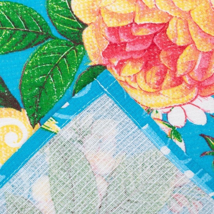 Полотенце 45×60 см, Английская роза, бирюза, вафля, 160 гр/м2, хлопок 100%