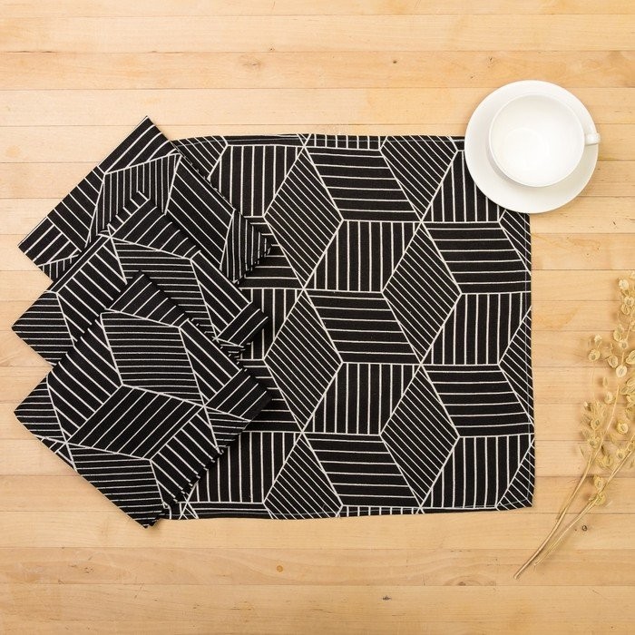 Набор декоративных салфеток Доляна 40х40см 4шт, Тренд черный, 100% пэ