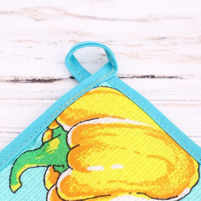 Набор кухонный Перцы 022 (варежка+прихватка), бирюзовый, хл, вафля