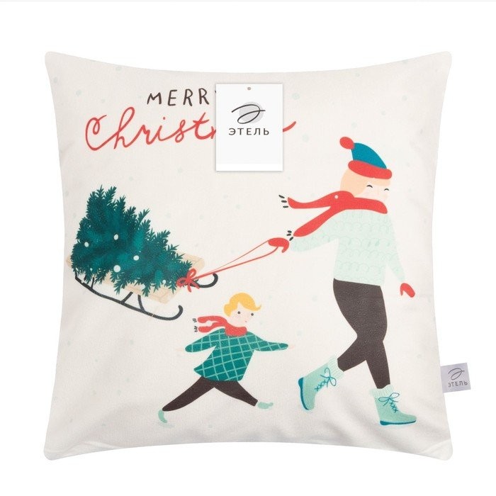 Наволочка на подушку Этель «С елкой», 40*40 см, 100 п/э, велюр